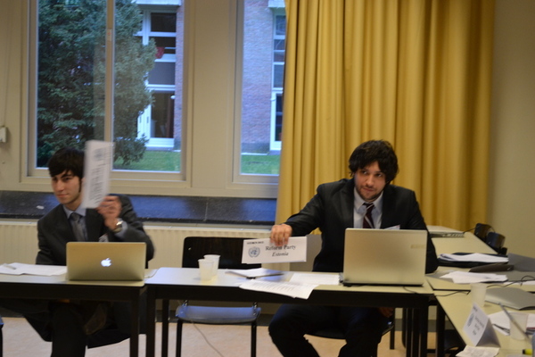 This two-day conference was organized by University College Utrecht (UCU). Etienne Rosas (2nd from the left on the photo) was one of about 100 participating students from about ten organizations. There were five different panels simulating five organs: UN Security Council, International Court of Justice, European Parliament, UN Human Rights Council (UNHRC) and UN Economic and Social Council (ECOSOC). Etienne Rosas represented the Reform Party of Estonia at the European Parliament.