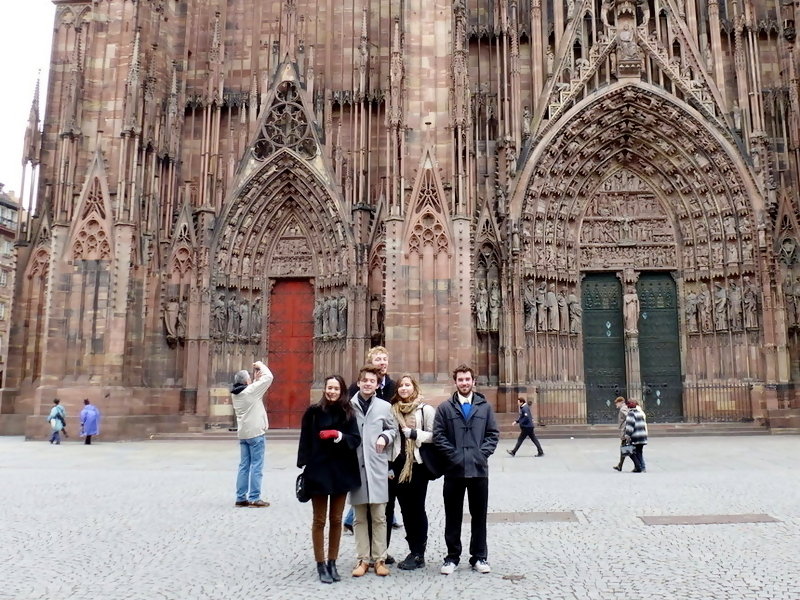 On April 19-20, the undergraduate students spending a semester in Paris in the Arcadia-AGS Study Abroad program went on a two-day trip to Strasbourg, France. Since Strasbourg is one of the EU capitals, this allowed them to see firsthand what they discussed in class. Along with AGS study abroad coordinator Jennifer Wright, they visited the Council of Europe which is the oldest intergovernmental organization in Europe and the one that brings together the largest number of countries (47 member states). There they had a guided tour including a visit of the main Chamber which is the seat of the Parliamentary Assembly of the Council of Europe and the Congress of Local and Regional Authorities of Europe. This was followed by an informational talk by one of the Council staff. Students also spent some time exploring the city and visited the Notre-Dame de Strasbourg Cathedral which is one of the landmarks of Alsace. And of course they enjoyed Alsatian cuisine (Sauerkraut, Riesling Wine, Flemmekueche...).