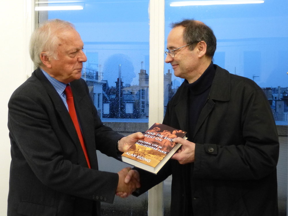 Author and journalist Alan Riding led a discussion on "The Social Responsibilities of Writers and Artists" at AGS on Wednesday April 18. Riding based his talk on the extended research he did for his latest book And the Show Went On: Cultural Life in Nazi-Occupied Paris (Knopf: New York 2010), as well as on the knowledge gained from his 40-year career as a journalist, including 12 years as Cultural Correspondant for Europe of the New York Times. Riding engaged the audience in a discussion about the role of art and creation during times of conflict and misery. This event was one of the "AGS Wine and Cheese" evenings, which gather faculty, students, alumni and guests to debate issues of international affairs in a convivial atmosphere around a buffet of French cheeses and wine.